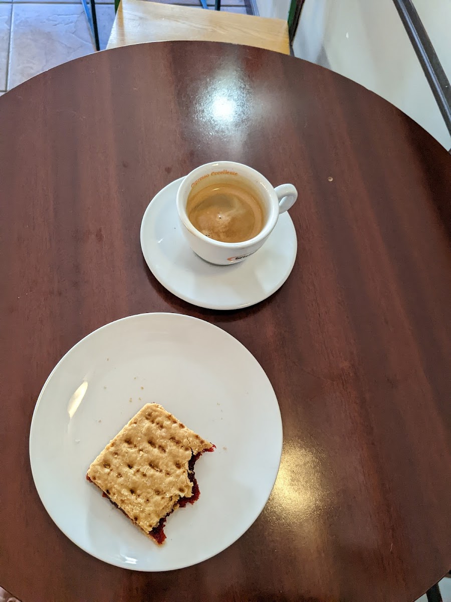 We didn't eat, just had coffee. My son spent many summers, while growing up, in Italy, with his Nonna. I've only been there a couple times. From driving by, this place reminded me of the bars (coffee shops) we went to. It did not disappoint, it had my son wishing he could go back now. The espresso and mocha cappuccino were good. Great atmosphere, great service,